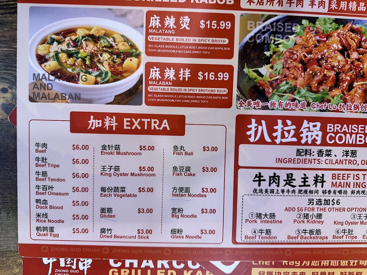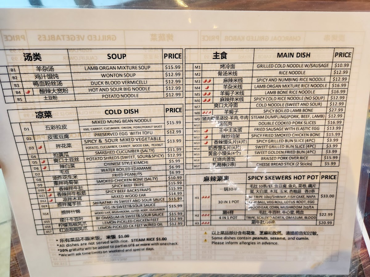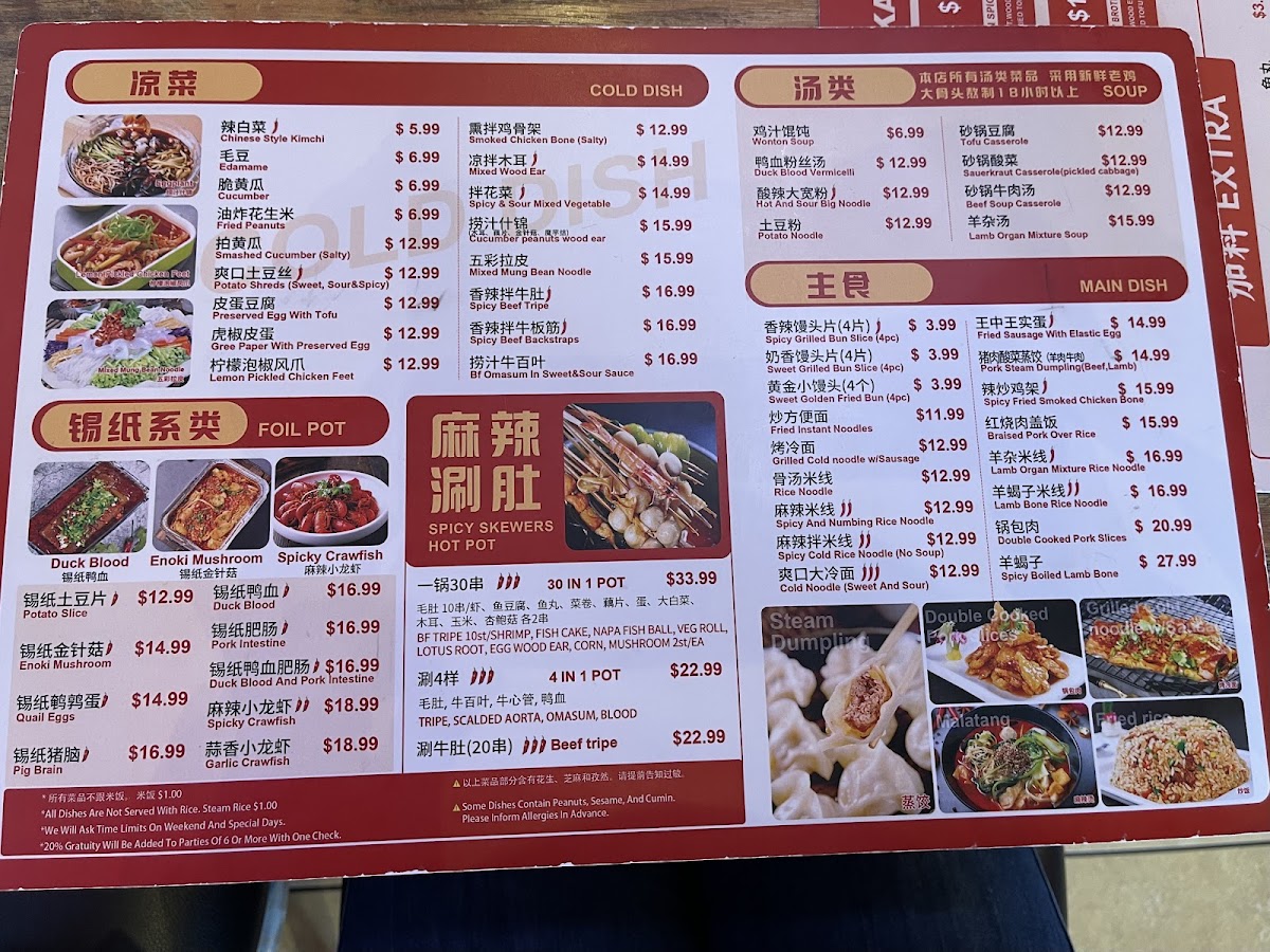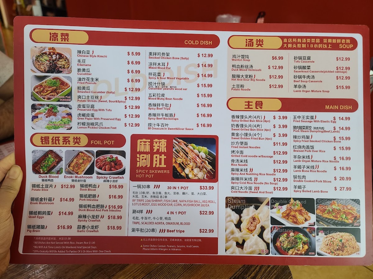 Be Tripe 10st/shrimp. Fish Cake, Napa Fish Ball. Veg Rolllotus Root.egg Wood Ear, Corn, Mushroom 2st/ea 毛肚10串/虾、鱼豆腐、鱼丸、菜卷、藕片、蛋、大白菜、木耳、玉米、杏鲍菇 各2串